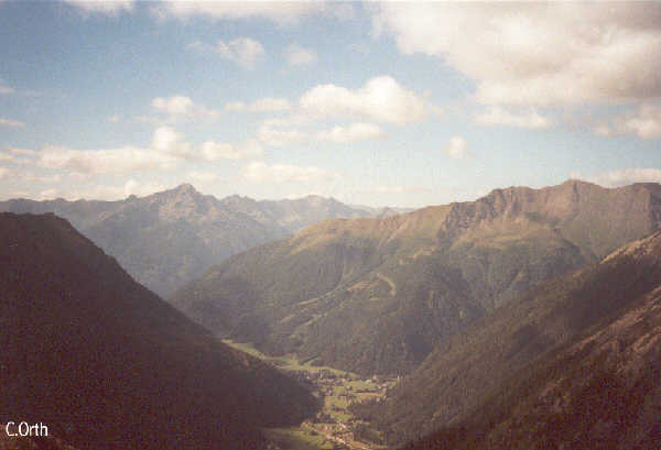 dem Kessel hinaus, so sieht man die Bergwelt rund um Obervellach.
