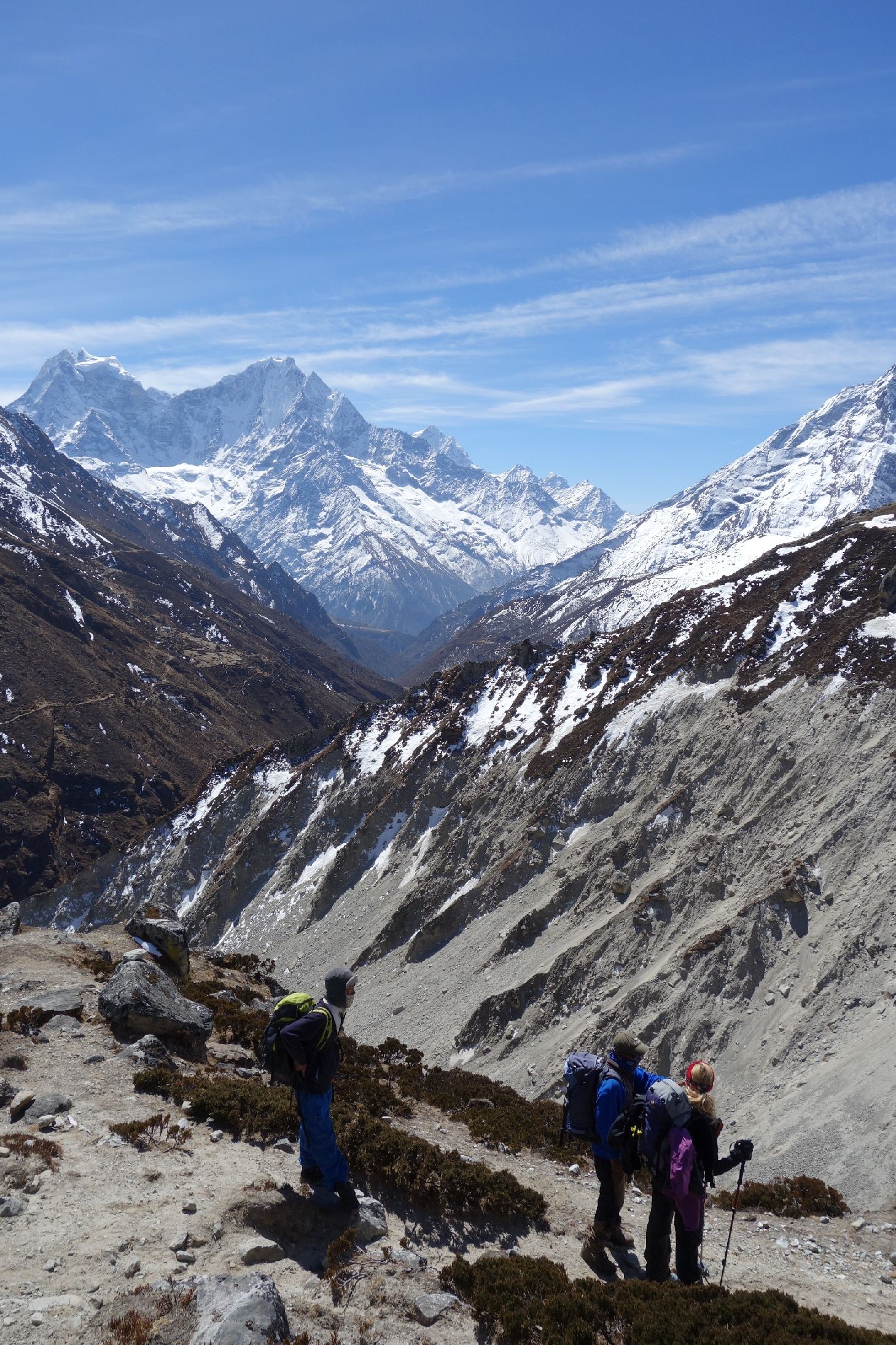 bevor wir den steilen Abstieg aus dem Gokyo Tal beginnen. Der Himmel lässt